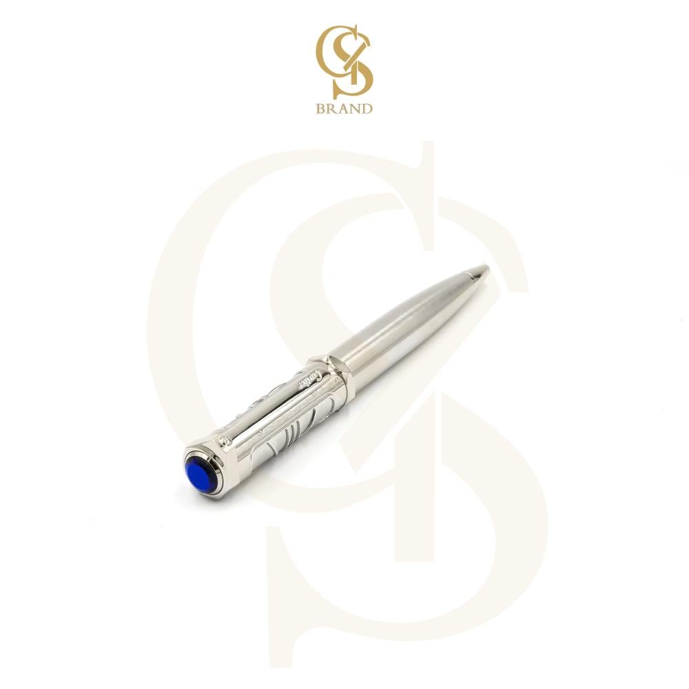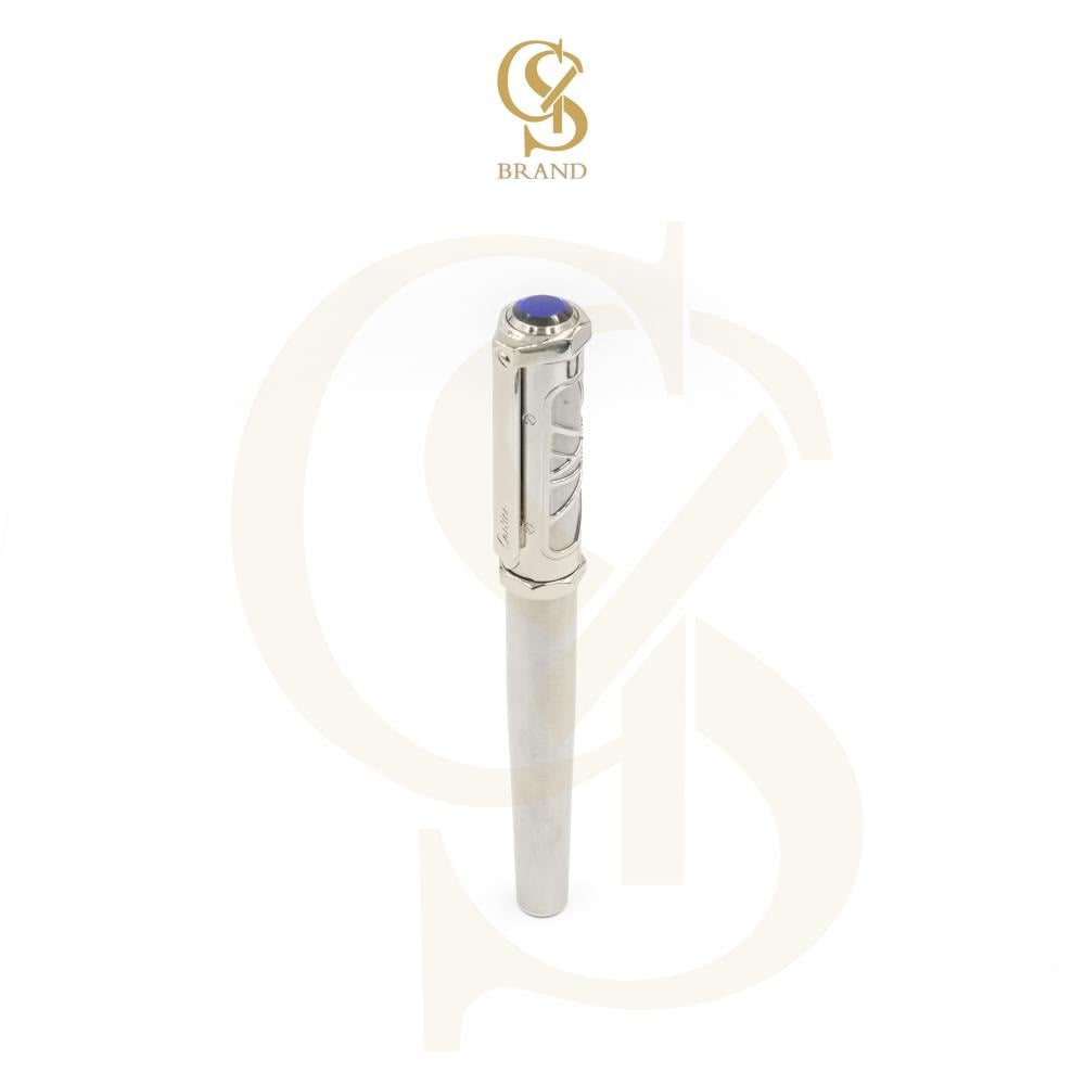 قلم كارتير فضي مع لمسة زرقاء، لمسة من الفخامة والأناقة في كل كلمة تكتبها.